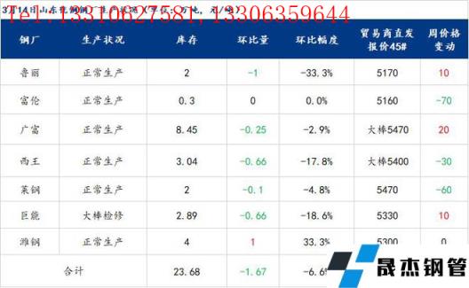數(shù)據(jù):山東優(yōu)特?zé)o縫厚壁鋼管廠家?guī)齑?3.68萬(wàn)噸,環(huán)比下降1.67萬(wàn)噸,減少6.59%,同比下降0.41萬(wàn)噸,降幅1.7%。