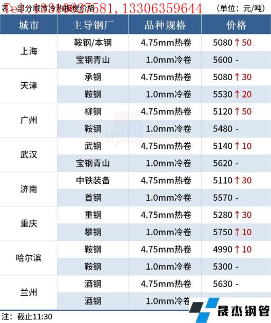 ◎上海:18日早盤熱卷市場價格漲50,現(xiàn)主流報價1500普5050-5080元/噸,1800報5170-5180元/噸;1500錳5220元/噸,1800報5320元/噸左右,2.75Q235B報5180-5200元/噸,2.75SPHC報5240元/噸左右。(單位:元/噸)