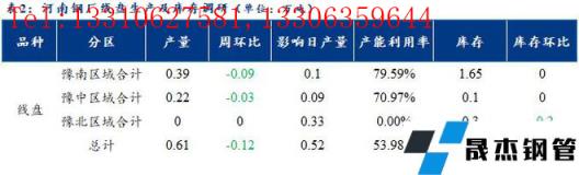 1、調(diào)研數(shù)據(jù)顯示,統(tǒng)計(jì)的河南地區(qū)10家建筑厚壁無(wú)縫鋼管樣本無(wú)縫厚壁鋼管廠(chǎng)家中,河南省無(wú)縫厚壁鋼管廠(chǎng)家線(xiàn)盤(pán)日均產(chǎn)量0.61萬(wàn)噸,較上周產(chǎn)量減少0.12萬(wàn)噸;線(xiàn)盤(pán)產(chǎn)能利用率53.98%,較上周下降16.44%。