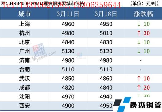 截至3月18日,全國主要城市20mm三級(jí)抗震螺紋鋼均價(jià)4955元/噸,周環(huán)比上漲3元/噸;8.0mmHPB300高線均價(jià)5162元/噸,周環(huán)比下跌2元/噸。