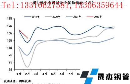 鋼鐵是終端制造業(yè)的重要生產(chǎn)原材料,以鋼鐵消費趨勢為觀測視角可以較為準確的判斷下游制造業(yè)發(fā)展狀況。2月鋼鐵業(yè)供給指數(shù)為146.92,同比下降5.26,環(huán)比下降2.86%。北方地區(qū)在采暖季和冬奧會環(huán)保影響下,厚壁無縫鋼管產(chǎn)量管控依然嚴格。據(jù)統(tǒng)計,2月全國粗鋼產(chǎn)量6738.5萬噸,日均產(chǎn)量240.66萬噸,環(huán)比減少9.79萬噸,降幅3.91%,同比下降13.86%。消費方面,五大品種厚壁無縫鋼管消費環(huán)比下降19.63%,同比下降4%。具體來看,房地產(chǎn)資金緊張雖有緩解,但受季節(jié)影響,用鋼量繼續(xù)下降,建筑厚壁無縫鋼管表觀消費量環(huán)比下降38%。制造業(yè)方面,受春節(jié)和疫情干擾因素影響,2月份,制造業(yè)企業(yè)復(fù)工復(fù)產(chǎn)較晚,實際用鋼消費下降,其中熱卷消費同比下降7.4%,環(huán)比下降8.2%。
