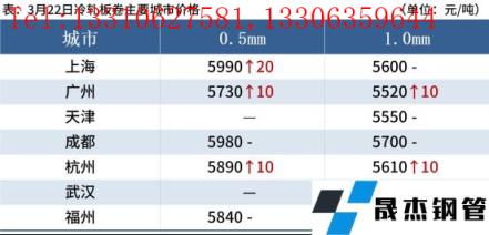 冷軋板卷:3月22日,全國24個主要城市1.0mm冷卷均價5649元/噸,較上個交易日上漲3元/噸。今日黑色系期貨盤面走勢較強,部分區(qū)域熱、冷價差處于持續(xù)收窄態(tài)勢;受疫情影響,運輸方面受阻,到貨情況不佳,部分市場現(xiàn)有庫存不多壓力較小,貿(mào)易商以出貨回籠資金為主。預(yù)計23日國內(nèi)冷軋板卷價格或?qū)⒄鹗庍\行。