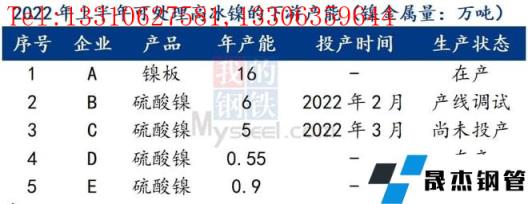 隨著新能源產業(yè)的高速發(fā)展,市場對鎳需求增長,高冰鎳作為硫酸鎳原料的作用也被重視起來。預計2022年上半年,國內可處理高冰鎳的設備產能鎳金屬量1.34萬噸/月。