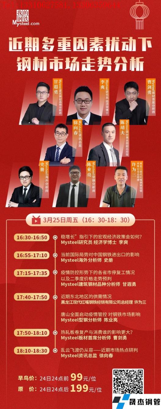 3月25日周五下午16:30,黑龍江現(xiàn)代紅嘴鋼鐵經(jīng)銷有限公司總經(jīng)理許為三、資訊總監(jiān)徐向春、經(jīng)濟(jì)學(xué)博士研究員李爽、板材首席分析師曹劍勇、建筑厚壁無縫鋼管品種分析師甘遐勇、型鋼分析師陳業(yè)亮及國際鋼鐵市場分析師史冊,將做客直播間,聊一聊近期多重因素?cái)_動(dòng)下對(duì)鋼鐵市場的影響有哪些?