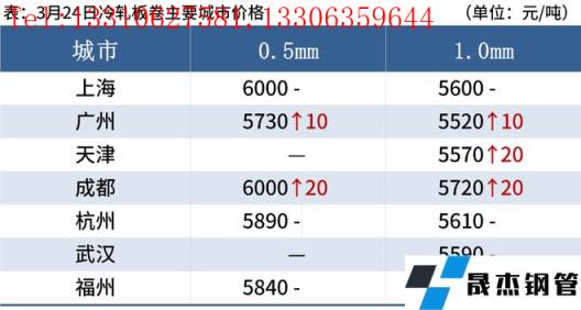 冷軋板卷:3月24日,全國24個(gè)主要城市1.0mm冷卷均價(jià)5656元/噸,較上個(gè)交易日上漲10元/噸。今日早間市場報(bào)價(jià)紛紛上漲20-30元/噸,詢單人數(shù)明顯增加,但由于疫情影響,需求持續(xù)疲軟,多數(shù)市場存在暗降優(yōu)惠現(xiàn)象,貿(mào)易商以出貨回籠資金為主,心態(tài)較為謹(jǐn)慎。庫存方面,據(jù)不完全統(tǒng)計(jì),現(xiàn)冷軋無縫厚壁鋼管廠家?guī)齑?8.68萬噸,周環(huán)比增加4.74萬噸,社會庫存140.37萬噸,周環(huán)比減少2.75萬噸,周消費(fèi)量81.67萬噸,環(huán)比減少1.45萬噸。綜合來看,故預(yù)計(jì)25日國內(nèi)冷軋板卷價(jià)格或?qū)⒈P整運(yùn)行。
