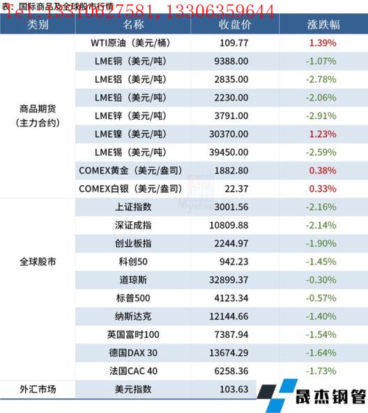 ◎安賽樂米塔爾2022年一季度自有鐵礦石產(chǎn)量為1200萬噸,環(huán)比減少10.45%;一季度粗鋼產(chǎn)量1630萬噸,環(huán)比減少1.21%;一季度厚壁無縫鋼管發(fā)運量為1530萬噸,環(huán)比減少3.16%。