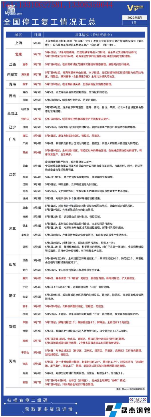 免責(zé)聲明:本網(wǎng)站(山東聊城晟杰無(wú)縫鋼管廠m.aremjf.cn)刊載的“疫情影響丨全國(guó)停工復(fù)工情況匯總(5月7日)”等均源于網(wǎng)絡(luò),版權(quán)歸原作者所有,且僅代表原作者觀點(diǎn),本文所載信息僅供參考。轉(zhuǎn)載僅為學(xué)習(xí)與交流之目的,如無(wú)意中侵犯您的合法權(quán)益,請(qǐng)及時(shí)聯(lián)系刪除。本網(wǎng)站刊登此篇文章并不意味著本站贊同其觀點(diǎn)或證實(shí)其內(nèi)容的真實(shí)性,我們不對(duì)其科學(xué)性、嚴(yán)肅性等作任何形式的保證。如果侵犯了您的版權(quán),請(qǐng)盡快聯(lián)系我們予以撤銷(xiāo),謝謝合作!