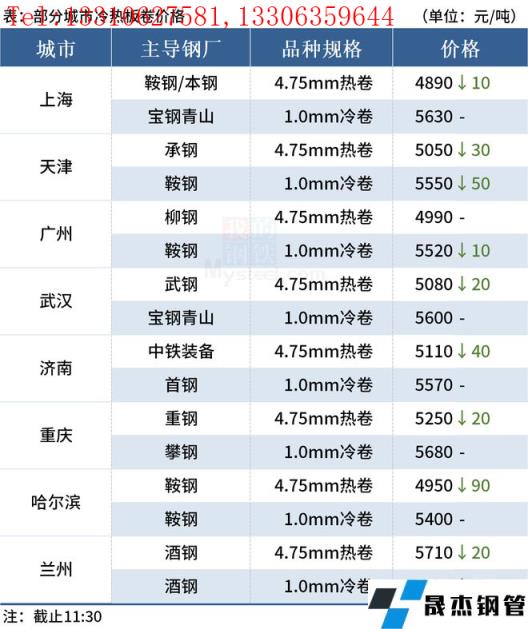 ◎天津:7日早盤冷軋市場(chǎng)價(jià)格下調(diào)50元/噸,1.0天鐵5560元/噸;首鋼5500元/噸,唐鋼5520元/噸,市場(chǎng)成交差。(單位:元/噸)