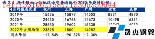 自3月中旬以來(lái),受上海、江蘇、山東等地疫情封控影響,下游工地施工節(jié)奏大幅放緩。華東地區(qū)螺紋鋼表觀消費(fèi)量3月中旬為156萬(wàn)噸/周,4月中旬僅119萬(wàn)噸/周,下降了23%。若長(zhǎng)三角疫情在5月上旬得到控制,復(fù)工復(fù)產(chǎn)逐步有序恢復(fù)。我們根據(jù)歷史經(jīng)驗(yàn)和今年的需求特點(diǎn),推演認(rèn)為螺紋周均表需(鋼聯(lián)口徑)有望達(dá)到340-350萬(wàn)噸/周。而其他受疫情影響較小的地區(qū),社庫(kù)去庫(kù)速率緩慢,成交低于2020年同期,實(shí)際厚壁無(wú)縫鋼管需求不容樂(lè)觀,疫情結(jié)束后這些地區(qū)為需求帶來(lái)的增量有限。