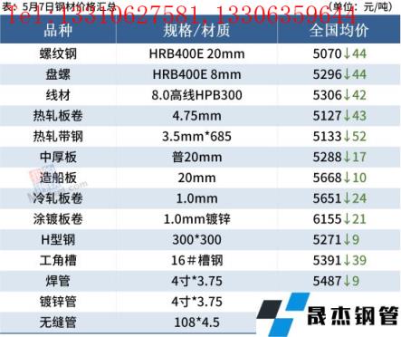 熱軋板卷:5月7日,全國(guó)24個(gè)主要城市4.75mm熱軋板卷均價(jià)5127元/噸,較上個(gè)交易日下跌43元/噸?,F(xiàn)貨價(jià)格維持6日下行趨勢(shì),今日市場(chǎng)成交普遍偏弱,受情緒影響采貨心理不及預(yù)期,多謹(jǐn)慎操作,多數(shù)商家依舊看弱。預(yù)計(jì)下周全國(guó)熱軋板卷市場(chǎng)呈現(xiàn)持穩(wěn)的態(tài)勢(shì)。