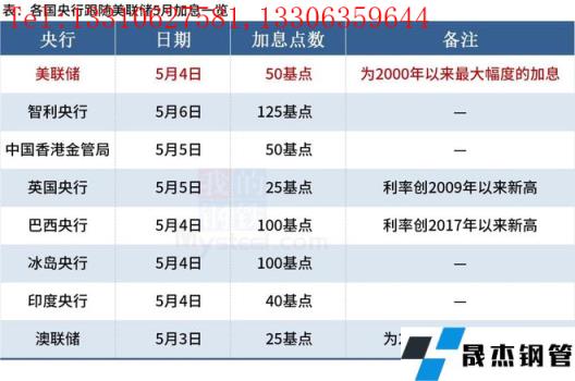 據(jù)不完全統(tǒng)計,截至發(fā)稿,5月已有6家央行跟隨美聯(lián)儲腳步加息,1家央行先于美聯(lián)儲一天加息。具體如下: