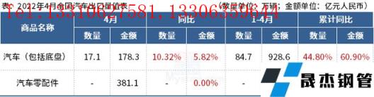 免責(zé)聲明:本網(wǎng)站(山東聊城晟杰無縫鋼管廠m.aremjf.cn)刊載的“海關(guān)總署:4月中國(guó)出口汽車17.1萬(wàn)輛,同比增長(zhǎng)10.32%”等均源于網(wǎng)絡(luò),版權(quán)歸原作者所有,且僅代表原作者觀點(diǎn),本文所載信息僅供參考。轉(zhuǎn)載僅為學(xué)習(xí)與交流之目的,如無意中侵犯您的合法權(quán)益,請(qǐng)及時(shí)聯(lián)系刪除。本網(wǎng)站刊登此篇文章并不意味著本站贊同其觀點(diǎn)或證實(shí)其內(nèi)容的真實(shí)性,我們不對(duì)其科學(xué)性、嚴(yán)肅性等作任何形式的保證。如果侵犯了您的版權(quán),請(qǐng)盡快聯(lián)系我們予以撤銷,謝謝合作!