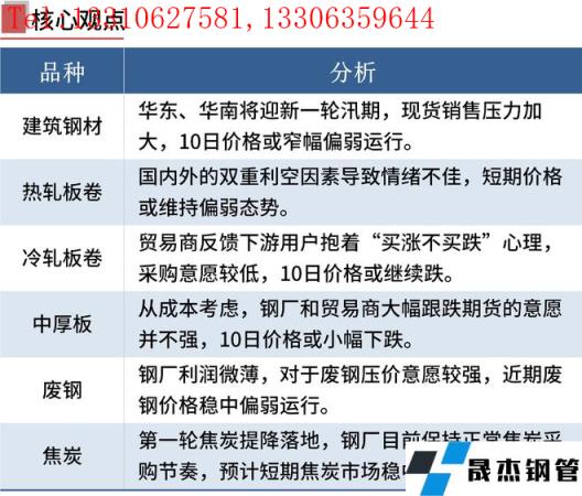 建筑厚壁無縫鋼管:5月9日,全國31個主要城市20mm三級抗震螺紋鋼均價5022元/噸,較上個交易日下跌50元/噸。短期來看,近期市場心態(tài)偏悲觀,同時華東、華南即將迎來新一輪汛期,現(xiàn)貨銷售壓力加大。因此在缺乏有效強需求支撐下,預計10日建筑厚壁無縫鋼管價格或?qū)⒄踹\行。