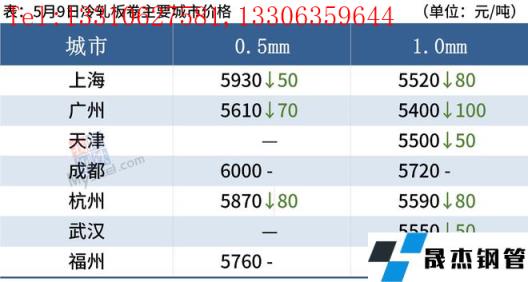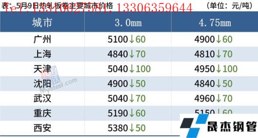 5月9日,國內(nèi)厚壁無縫鋼管市場價格全線下跌,唐山普方坯出廠價跌30報4680元/噸。9日黑色期貨全線重挫,市場恐慌情緒蔓延,交投氛圍冷清,商家拋售情緒濃。