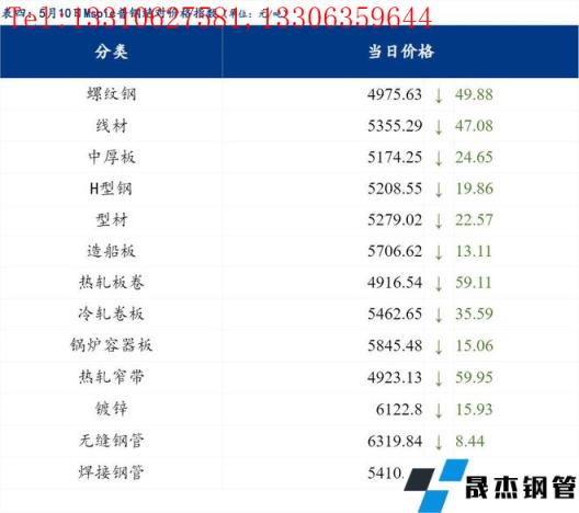 5月10日普鋼絕對(duì)價(jià)格指數(shù)變化:綜合指數(shù)5177.26,下跌43.86;螺紋鋼指數(shù)4975.63,下跌49.88;線材指數(shù)5355.29,下跌47.08;熱軋板卷指數(shù)4916.54,下跌59.11;冷軋板卷指數(shù)5462.65,下跌35.59;中厚板指數(shù)5174.25,下跌24.65。