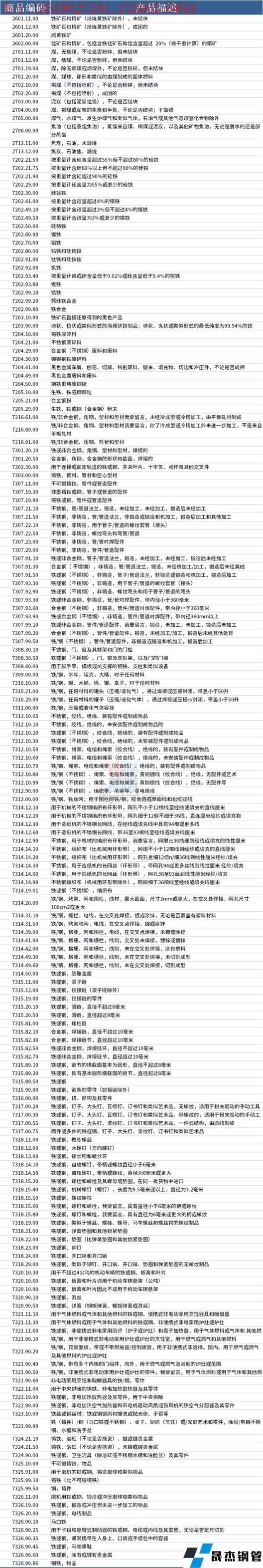 據(jù)不完全整理,美國(guó)征收中國(guó)產(chǎn)品關(guān)稅的清單,涉及鋼鐵類產(chǎn)品如下: