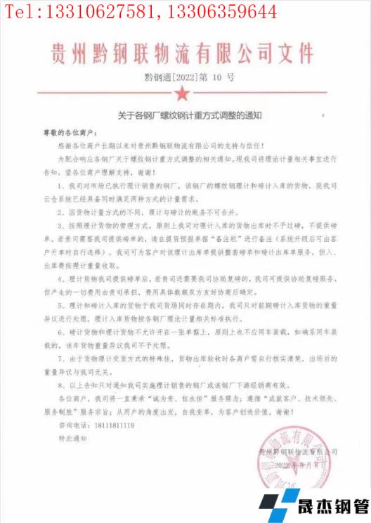 免責(zé)聲明:本網(wǎng)站(山東聊城晟杰無縫鋼管廠m.aremjf.cn)刊載的“貴州黔鋼聯(lián)物流有限公司關(guān)于各無縫鋼管廠家螺紋鋼計重方式調(diào)整的通知”等均源于網(wǎng)絡(luò),版權(quán)歸原作者所有,且僅代表原作者觀點(diǎn),本文所載信息僅供參考。轉(zhuǎn)載僅為學(xué)習(xí)與交流之目的,如無意中侵犯您的合法權(quán)益,請及時聯(lián)系刪除。本網(wǎng)站刊登此篇文章并不意味著本站贊同其觀點(diǎn)或證實(shí)其內(nèi)容的真實(shí)性,我們不對其科學(xué)性、嚴(yán)肅性等作任何形式的保證。如果侵犯了您的版權(quán),請盡快聯(lián)系我們予以撤銷,謝謝合作!