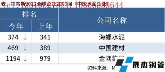 免責(zé)聲明:本網(wǎng)站(山東聊城晟杰無縫鋼管廠m.aremjf.cn)刊載的“中國(guó)3家水泥企業(yè)上榜福布斯2022全球企業(yè)2000強(qiáng)”等均源于網(wǎng)絡(luò),版權(quán)歸原作者所有,且僅代表原作者觀點(diǎn),本文所載信息僅供參考。轉(zhuǎn)載僅為學(xué)習(xí)與交流之目的,如無意中侵犯您的合法權(quán)益,請(qǐng)及時(shí)聯(lián)系刪除。本網(wǎng)站刊登此篇文章并不意味著本站贊同其觀點(diǎn)或證實(shí)其內(nèi)容的真實(shí)性,我們不對(duì)其科學(xué)性、嚴(yán)肅性等作任何形式的保證。如果侵犯了您的版權(quán),請(qǐng)盡快聯(lián)系我們予以撤銷,謝謝合作!