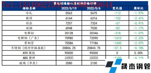 截止2022年5月13日,各原材料當(dāng)日即時(shí)價(jià)格以及價(jià)格周環(huán)比情況如下:
