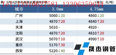 熱軋板卷:5月16日,全國24個主要城市4.75mm熱軋板卷均價5013元/噸,較上個交易日下跌8元/噸。受期貨盤面的影響午后價格小幅上揚(yáng),但成交普遍一般,看弱情緒仍在部分蔓延,商家多數(shù)仍謹(jǐn)慎操作,預(yù)計17日全國熱軋板卷價格將呈現(xiàn)小幅上漲的態(tài)勢。