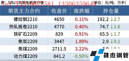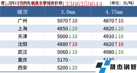 熱軋板卷:5月17日,全國24個(gè)主要城市4.75mm熱軋板卷均價(jià)5013元/噸,較上個(gè)交易日持平。現(xiàn)貨市場基本處于觀望狀態(tài),不急于拿貨,市場整體成交情況較弱,盤面全日震蕩運(yùn)行,午后部分市場有小幅下跌。供需角度來看,近期熱卷供應(yīng)已經(jīng)基本恢復(fù)正常,需求方面受盤面觸底反彈影響,部分投機(jī)商戶小批量備貨,但終端需求依然不佳,雖然前期部分延遲需求逐步釋放,但同比依然處于低位。綜合來看,預(yù)計(jì)近期全國熱軋板卷價(jià)格弱勢震蕩運(yùn)行為主。
