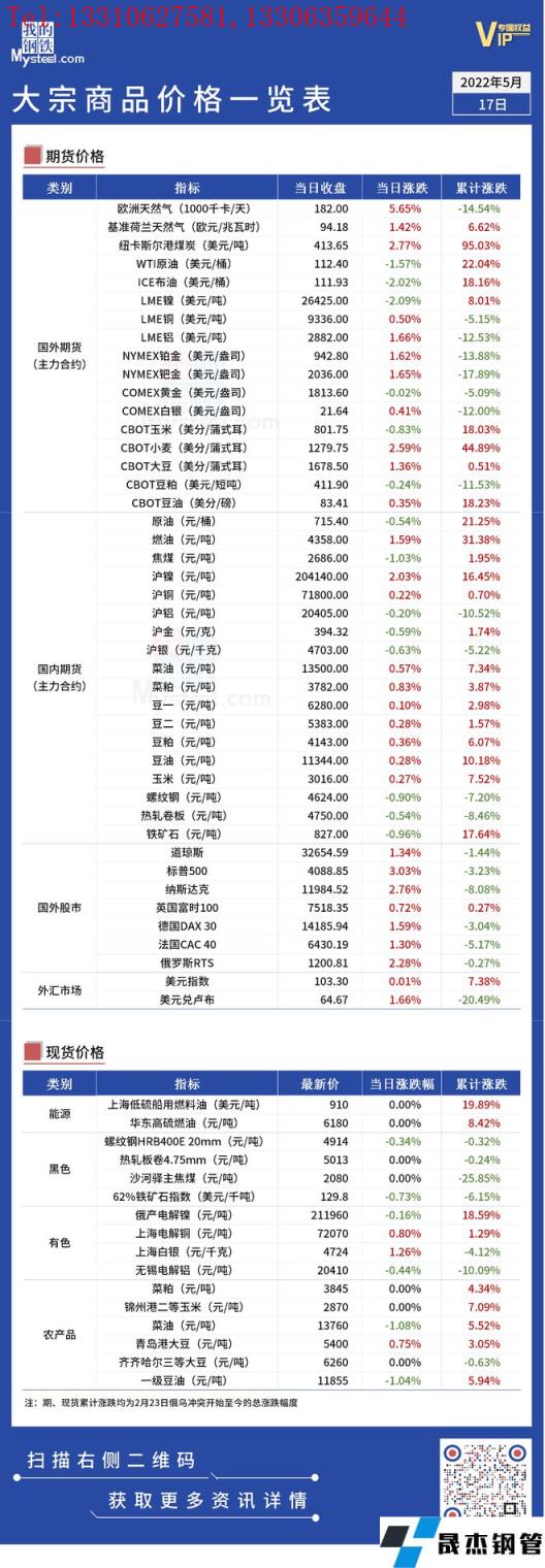 免責(zé)聲明:本網(wǎng)站(山東聊城晟杰無縫鋼管廠m.aremjf.cn)刊載的“俄烏局勢(shì)丨大宗商品價(jià)格一覽表(5月17日)”等均源于網(wǎng)絡(luò),版權(quán)歸原作者所有,且僅代表原作者觀點(diǎn),本文所載信息僅供參考。轉(zhuǎn)載僅為學(xué)習(xí)與交流之目的,如無意中侵犯您的合法權(quán)益,請(qǐng)及時(shí)聯(lián)系刪除。本網(wǎng)站刊登此篇文章并不意味著本站贊同其觀點(diǎn)或證實(shí)其內(nèi)容的真實(shí)性,我們不對(duì)其科學(xué)性、嚴(yán)肅性等作任何形式的保證。如果侵犯了您的版權(quán),請(qǐng)盡快聯(lián)系我們予以撤銷,謝謝合作!