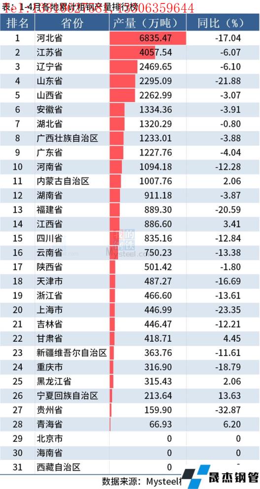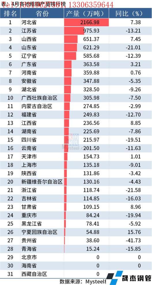 從分省數(shù)據(jù)來看,2022年前4月13個省市粗鋼產(chǎn)量同比降幅超10%。其中河北降17.04%、山東降21.88%,河南降12.28%、福建降20.59%、四川降12.84%、云南降13.38%,天津降16.69%、浙江降13.61%、上海降23.35%、吉林降12.21%,新疆降11.61%、重慶降18.79%和貴州降32.87%。具體情況如下: