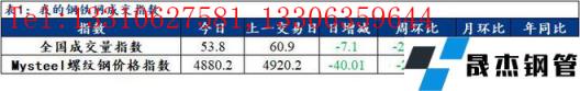 訊:全國建筑厚壁無縫鋼管成交量監(jiān)測,成交量相對指數(shù)來看,全國53.8減7.1,北方40.7減10.4,華東71.4減4.3,南方43.4減8.1。今日螺紋鋼價(jià)格指數(shù)4880.2,較上一交易日減40.01。