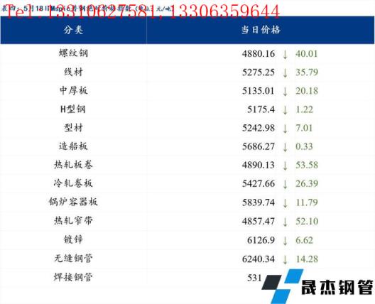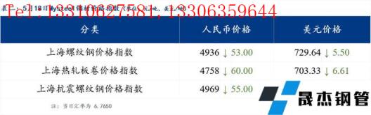 5月18日普鋼絕對價格指數(shù)變化:綜合指數(shù)5121.58,下跌34.88;螺紋鋼指數(shù)4880.16,下跌40.01;線材指數(shù)5275.25,下跌35.79;熱軋板卷指數(shù)4890.13,下跌53.58;冷軋板卷指數(shù)5427.66,下跌26.39;中厚板指數(shù)5135.01,下跌20.18。