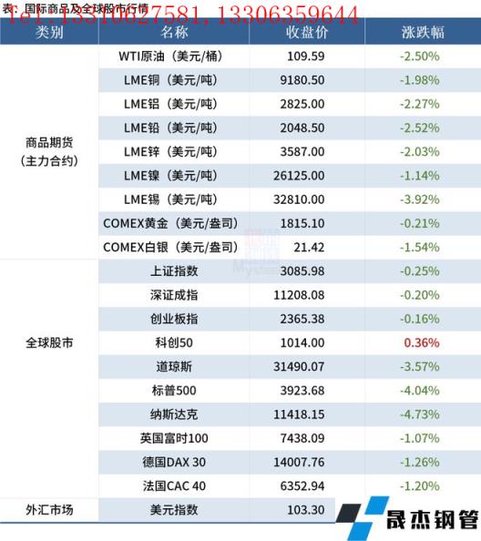 免責(zé)聲明:本網(wǎng)站(山東聊城晟杰無縫鋼管廠m.aremjf.cn)刊載的“2022年05月19日早讀:無縫鋼管廠家虧損面積擴(kuò)大,全球大宗商品價(jià)格重挫”等均源于網(wǎng)絡(luò),版權(quán)歸原作者所有,且僅代表原作者觀點(diǎn),本文所載信息僅供參考。轉(zhuǎn)載僅為學(xué)習(xí)與交流之目的,如無意中侵犯您的合法權(quán)益,請(qǐng)及時(shí)聯(lián)系刪除。本網(wǎng)站刊登此篇文章并不意味著本站贊同其觀點(diǎn)或證實(shí)其內(nèi)容的真實(shí)性,我們不對(duì)其科學(xué)性、嚴(yán)肅性等作任何形式的保證。如果侵犯了您的版權(quán),請(qǐng)盡快聯(lián)系我們予以撤銷,謝謝合作!