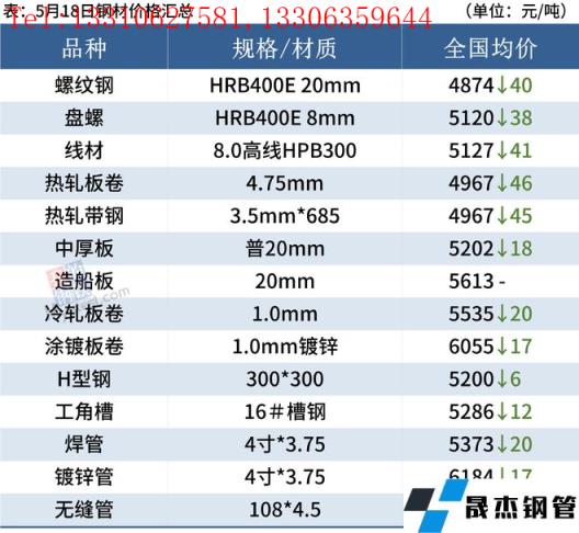 5月18日,國內(nèi)厚壁無縫鋼管市場下跌為主,唐山鋼坯出廠價格跌40報4520元/噸。實際成交暗降情況明顯,全天成交偏弱。