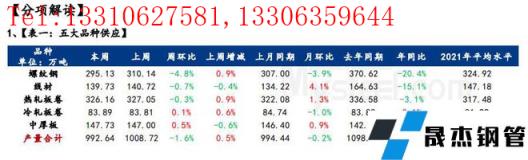本周整體降幅擴張,主要是由于建材中螺紋鋼減量突出,主因在于螺紋鋼長短流程同步減產(chǎn),減產(chǎn)主因集中于虧損檢修/減產(chǎn),以及主動控產(chǎn)。對于此種現(xiàn)象來說,前幾周雖也有出現(xiàn),但涉及范圍較本周比明顯較小。這與近期黑色金屬震蕩偏弱有很大關系,鋼價跌破無縫厚壁鋼管廠家生產(chǎn)成本線,促使部分無縫厚壁鋼管廠家臨時執(zhí)行減產(chǎn)/停產(chǎn)計劃。短期來看,供應端同比持續(xù)低位,伴隨全國范圍內(nèi)的防控放松,利潤水平逐步好轉,供應水平也會隨之提升,但提升速度受限于今年控產(chǎn)政策的背景大概率低于預期。