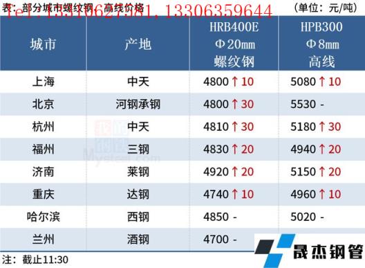 ◎杭州:20日早盤建材市場價格上漲30,螺沙4800中4780西城4760浙江華宏4690江蘇鑌鑫4690長達抗震4760線材中天5180亞新5070聯(lián)鑫黃海盤螺5030。(單位:元/噸)
