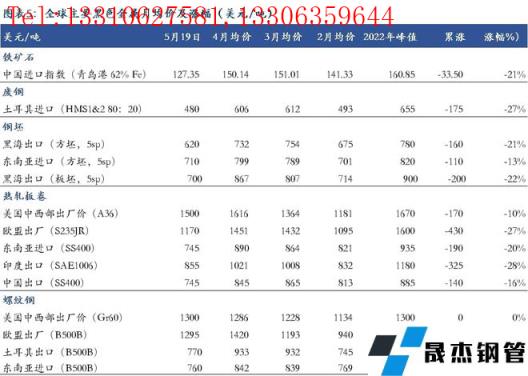 截至5月19日,中國鐵礦石進(jìn)口從4月初峰值累計下跌21%,土耳其廢鋼累計跌幅達(dá)到27%。從各品種區(qū)域價格走勢來看,熱卷綜合跌幅達(dá)到20%,而螺紋鋼跌幅在8%左右,歐洲熱卷價格累計跌幅為27%,相比之下美國跌幅最小,約10%。(圖表5)