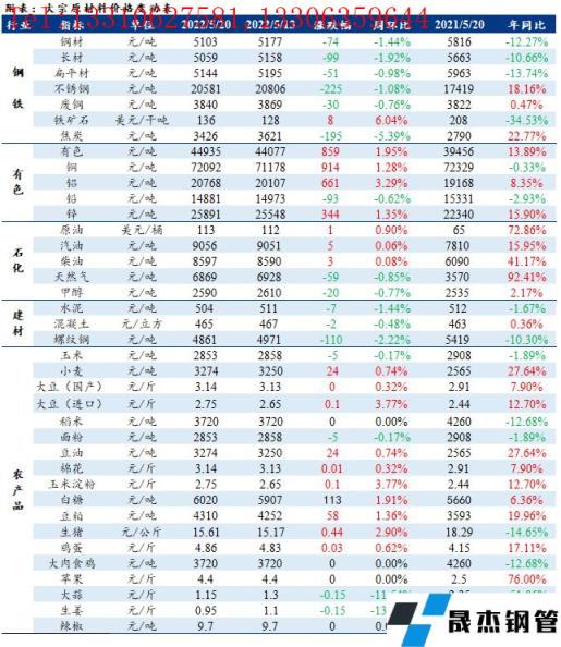 免責(zé)聲明:本網(wǎng)站(山東聊城晟杰無(wú)縫鋼管廠m.aremjf.cn)刊載的“周報(bào):大宗工業(yè)原材料、能源及農(nóng)產(chǎn)品價(jià)格周報(bào)(5.16-5.20)”等均源于網(wǎng)絡(luò),版權(quán)歸原作者所有,且僅代表原作者觀點(diǎn),本文所載信息僅供參考。轉(zhuǎn)載僅為學(xué)習(xí)與交流之目的,如無(wú)意中侵犯您的合法權(quán)益,請(qǐng)及時(shí)聯(lián)系刪除。本網(wǎng)站刊登此篇文章并不意味著本站贊同其觀點(diǎn)或證實(shí)其內(nèi)容的真實(shí)性,我們不對(duì)其科學(xué)性、嚴(yán)肅性等作任何形式的保證。如果侵犯了您的版權(quán),請(qǐng)盡快聯(lián)系我們予以撤銷,謝謝合作!