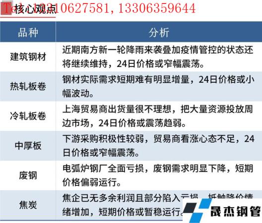 建筑厚壁無縫鋼管:5月23日,全國31個主要城市20mm三級抗震螺紋鋼均價4839元/噸,較上個交易日下跌10元/噸。短期來看,目前市場供應(yīng)端同比持續(xù)低位,同時近期南方新一輪降雨來襲疊加疫情管控的狀態(tài)還將繼續(xù)維持,消費難有好轉(zhuǎn)預(yù)期。目前市場仍然處于供需雙弱的格局。短期市場關(guān)注點仍在于消費能否有效恢復(fù)以及雨季對于消費的影響,因此預(yù)計24日國內(nèi)建筑厚壁無縫鋼管現(xiàn)貨價格窄幅震蕩為主。