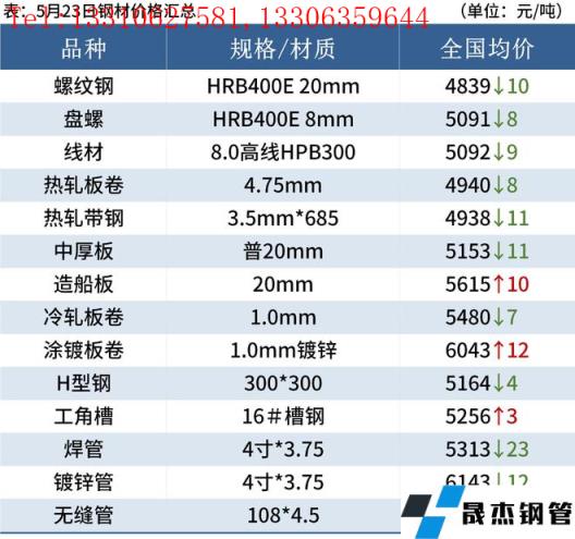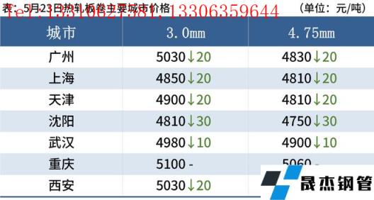 熱軋板卷:5月23日,全國24個主要城市4.75mm熱軋板卷均價4940元/噸,較上個交易日下跌8元/噸。5月22日,市場突傳印度將針對鐵礦石及部分鋼鐵產(chǎn)品大幅提高出口關(guān)稅,市場情緒得到回暖,盤面下方支撐增強。隨著經(jīng)濟下行壓力增大,政策面暖風(fēng)頻吹,5月5年期LPR下調(diào)15個基點,降低購房者置業(yè)成本、提高購房者置業(yè)意愿的同時,進一步提振了市場信心,預(yù)計后期地產(chǎn)方面將持續(xù)出臺利好政策。但由于疫情的影響,其對需求的制約依然明顯,厚壁無縫鋼管的現(xiàn)實需求短期難有明顯增量。因此,24日全國熱軋板卷仍呈現(xiàn)持穩(wěn)或小幅波動的態(tài)勢。