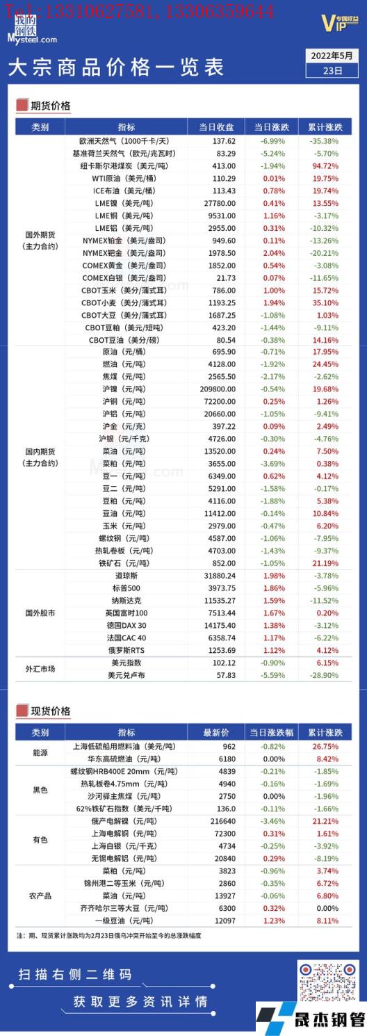 免責(zé)聲明:本網(wǎng)站(山東聊城晟杰無縫鋼管廠m.aremjf.cn)刊載的“俄烏局勢丨大宗商品價格一覽表(5月23日)”等均源于網(wǎng)絡(luò),版權(quán)歸原作者所有,且僅代表原作者觀點,本文所載信息僅供參考。轉(zhuǎn)載僅為學(xué)習(xí)與交流之目的,如無意中侵犯您的合法權(quán)益,請及時聯(lián)系刪除。本網(wǎng)站刊登此篇文章并不意味著本站贊同其觀點或證實其內(nèi)容的真實性,我們不對其科學(xué)性、嚴肅性等作任何形式的保證。如果侵犯了您的版權(quán),請盡快聯(lián)系我們予以撤銷,謝謝合作!