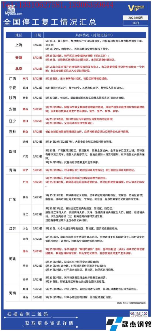 免責(zé)聲明:本網(wǎng)站(山東聊城晟杰無縫鋼管廠m.aremjf.cn)刊載的“疫情影響丨全國停工復(fù)工情況匯總(5月26日)”等均源于網(wǎng)絡(luò),版權(quán)歸原作者所有,且僅代表原作者觀點(diǎn),本文所載信息僅供參考。轉(zhuǎn)載僅為學(xué)習(xí)與交流之目的,如無意中侵犯您的合法權(quán)益,請(qǐng)及時(shí)聯(lián)系刪除。本網(wǎng)站刊登此篇文章并不意味著本站贊同其觀點(diǎn)或證實(shí)其內(nèi)容的真實(shí)性,我們不對(duì)其科學(xué)性、嚴(yán)肅性等作任何形式的保證。如果侵犯了您的版權(quán),請(qǐng)盡快聯(lián)系我們予以撤銷,謝謝合作!