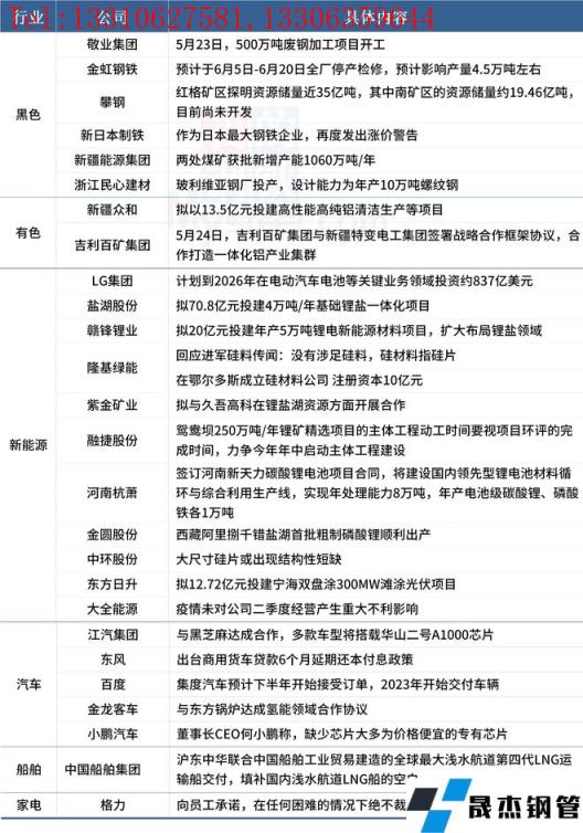 金虹鋼鐵預(yù)計(jì)于6月5日-6月20日全廠停產(chǎn)檢修,預(yù)計(jì)影響產(chǎn)量4.5萬噸左右;新疆眾和擬以13.5億元投建高性能高純鋁清潔生產(chǎn)等項(xiàng)目;LG集團(tuán)計(jì)劃到2026年在電動(dòng)汽車電池等關(guān)鍵業(yè)務(wù)領(lǐng)域投資約837億美元;格力向員工承諾,在任何困難的情況下絕不裁員。具體情況如下: