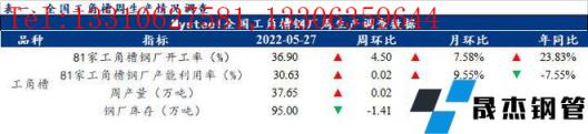 27日檢測(cè)的全國(guó)81家工角槽無(wú)縫厚壁鋼管廠家企業(yè)中,本周開工率36.9%,較上周(32.4%)增加4.4%,產(chǎn)能利用率為30.63%,較上周(30.61%)增加0.02%。本周全國(guó)工角槽產(chǎn)量37.65萬(wàn)噸,較上周(37.63)增加0.02萬(wàn)噸。