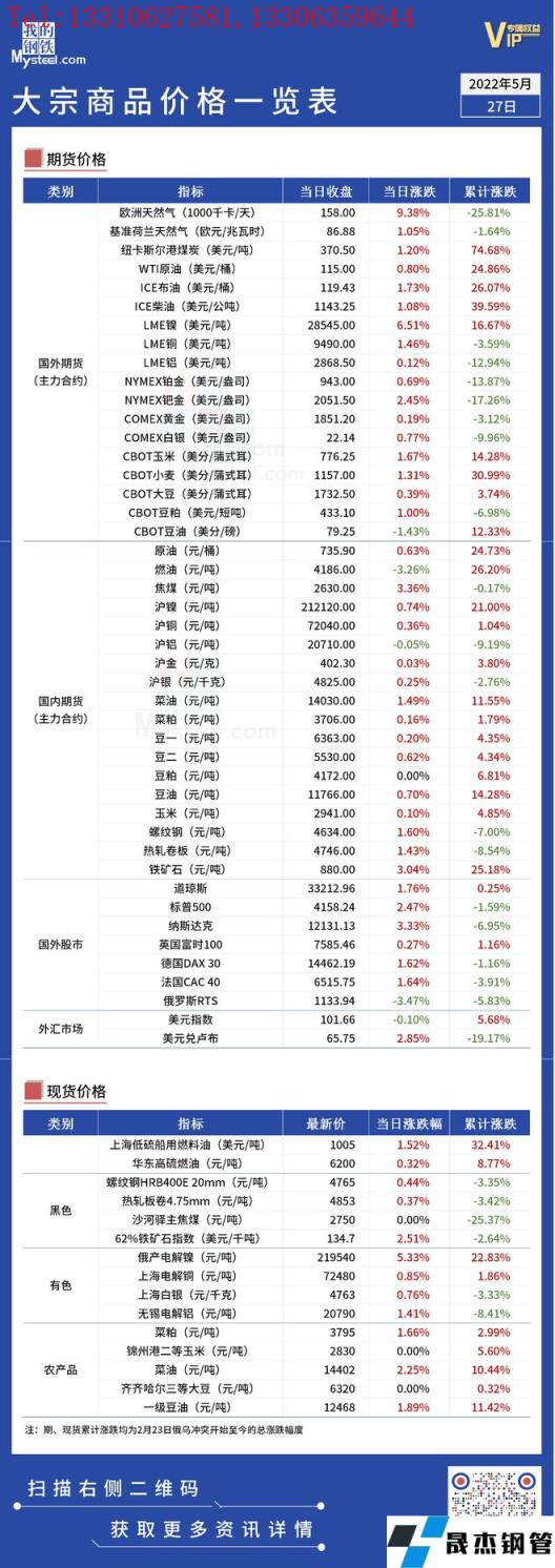 免責(zé)聲明:本網(wǎng)站(山東聊城晟杰無縫鋼管廠m.aremjf.cn)刊載的“俄烏局勢丨大宗商品價格一覽表(5月27日)”等均源于網(wǎng)絡(luò),版權(quán)歸原作者所有,且僅代表原作者觀點,本文所載信息僅供參考。轉(zhuǎn)載僅為學(xué)習(xí)與交流之目的,如無意中侵犯您的合法權(quán)益,請及時聯(lián)系刪除。本網(wǎng)站刊登此篇文章并不意味著本站贊同其觀點或證實其內(nèi)容的真實性,我們不對其科學(xué)性、嚴肅性等作任何形式的保證。如果侵犯了您的版權(quán),請盡快聯(lián)系我們予以撤銷,謝謝合作!