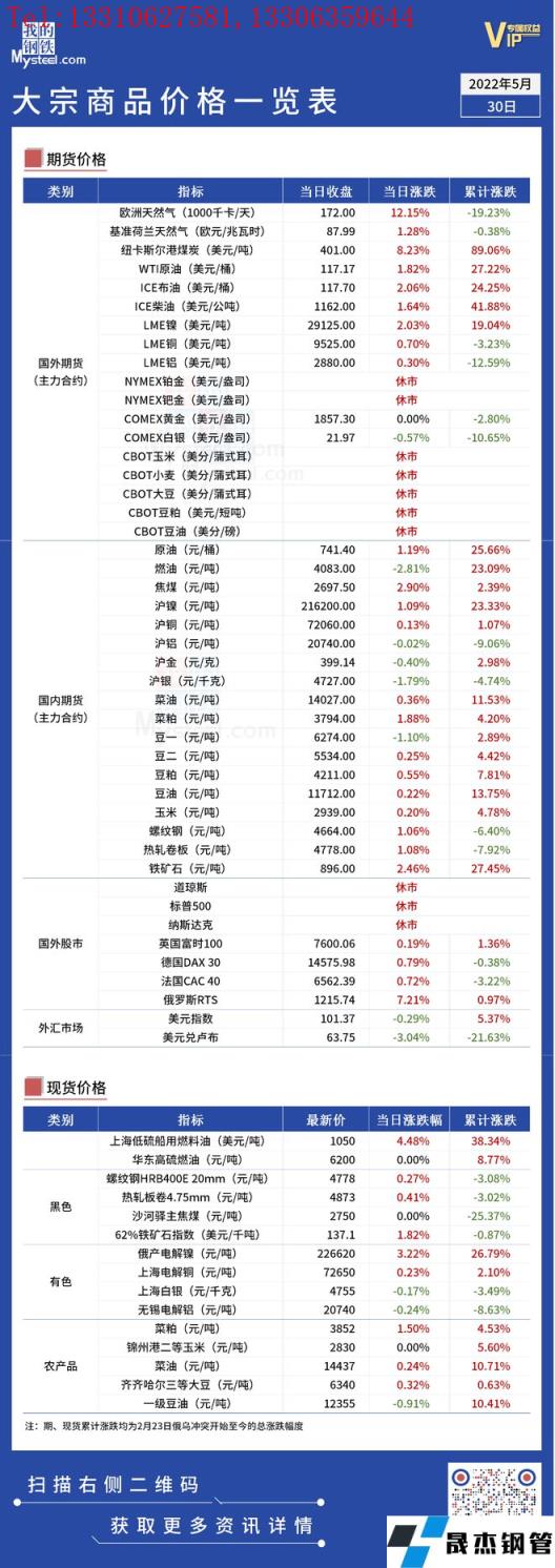 免責(zé)聲明:本網(wǎng)站(山東聊城晟杰無縫鋼管廠m.aremjf.cn)刊載的“俄烏局勢丨大宗商品價(jià)格一覽表(5月30日)”等均源于網(wǎng)絡(luò),版權(quán)歸原作者所有,且僅代表原作者觀點(diǎn),本文所載信息僅供參考。轉(zhuǎn)載僅為學(xué)習(xí)與交流之目的,如無意中侵犯您的合法權(quán)益,請及時(shí)聯(lián)系刪除。本網(wǎng)站刊登此篇文章并不意味著本站贊同其觀點(diǎn)或證實(shí)其內(nèi)容的真實(shí)性,我們不對其科學(xué)性、嚴(yán)肅性等作任何形式的保證。如果侵犯了您的版權(quán),請盡快聯(lián)系我們予以撤銷,謝謝合作!