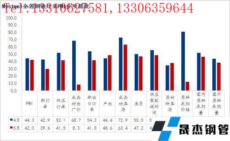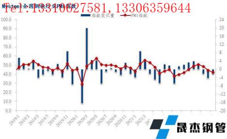 2022年5月份全國(guó)鋼鐵行業(yè)PMI為42.0%,環(huán)比回落2.3個(gè)百分點(diǎn),連續(xù)三個(gè)月低于榮枯線。分指標(biāo)來看,本月新訂單、新出口訂單、積壓訂單、出廠價(jià)格、原料采購價(jià)指數(shù)均大幅回落,僅產(chǎn)出、原材料庫存指數(shù)小幅回升,但仍處于榮枯線下方,顯示了5月份國(guó)內(nèi)鋼鐵行業(yè)呈現(xiàn)供需兩弱的低迷態(tài)勢(shì)運(yùn)行。具體來看,5月份國(guó)內(nèi)疫情仍呈多點(diǎn)散發(fā)態(tài)勢(shì),繼續(xù)拖累終端需求釋放,同時(shí)宏觀經(jīng)濟(jì)數(shù)據(jù)顯示投資消費(fèi)信心不足、國(guó)內(nèi)經(jīng)濟(jì)面臨較大下行壓力,導(dǎo)致市場(chǎng)悲觀情緒蔓延,國(guó)內(nèi)厚壁無縫鋼管價(jià)格持續(xù)下行,無縫厚壁鋼管廠家生產(chǎn)盈利快速收窄,尤其是短流程無縫厚壁鋼管廠家面臨全線虧損,無縫厚壁鋼管廠家供給釋放受到抑制。面對(duì)即將到來的6月份,國(guó)內(nèi)鋼價(jià)能否止跌企穩(wěn),下面筆者從PMI各項(xiàng)指數(shù)進(jìn)行分析解讀。