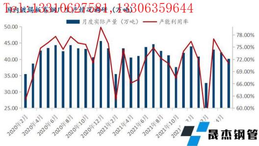 調(diào)研數(shù)據(jù)顯示:據(jù)監(jiān)測(cè)的26家鍍錫板生產(chǎn)企業(yè)中,共計(jì)49條產(chǎn)線,2022年5月份產(chǎn)能利用率71.02%,月環(huán)比下降2.66%,同比下降5.08%;5月鍍錫板實(shí)際產(chǎn)量40.14萬(wàn)噸,月環(huán)比減少2萬(wàn)噸,同比減少3.32萬(wàn)噸;另外,對(duì)國(guó)內(nèi)重點(diǎn)鍍鉻生產(chǎn)企業(yè)調(diào)研數(shù)據(jù)顯示,5月份鍍鉻板產(chǎn)量共計(jì)7.32萬(wàn)噸。