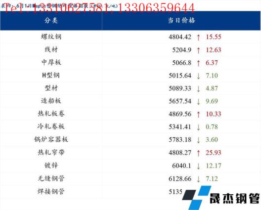 6月1日普鋼絕對(duì)價(jià)格指數(shù)變化:綜合指數(shù)5051.85,上漲9.41;螺紋鋼指數(shù)4804.42,上漲15.55;線(xiàn)材指數(shù)5204.9,上漲12.63;熱軋板卷指數(shù)4869.56,上漲10.33;冷軋板卷指數(shù)5341.41,下跌0.78;中厚板指數(shù)5066.8,上漲6.37。