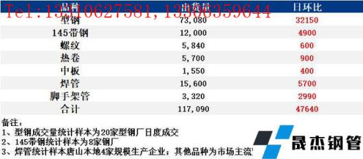表:6月1日唐山鋼市主要品種成交一覽(單位:噸)