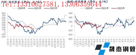 5月份全國各地市場價格不同程度下跌,華南跌幅居前,目前廣州-北京價差較上月有所收窄,僅在140元/噸左右,此價差處于偏低水平,不僅低于2020年同期水平,且低于兩地之間的運費,因此無縫厚壁鋼管廠家資源南下不如在京津冀當?shù)叵?,且華南區(qū)域的盤螺品種售價還低于華北,因此京津冀的無縫厚壁鋼管廠家除承鋼、樂鋼為維護客戶渠道分別有3萬噸的南下計劃,其他無縫厚壁鋼管廠家均無資源南下計劃。目前杭州-北京兩地之間價差較上月環(huán)比有所提高,不過兩地之間價差不足100元/噸,尚不足以吸引華北區(qū)域無縫厚壁鋼管廠家資源發(fā)往華東。當前京津冀建材無縫厚壁鋼管廠家產(chǎn)量緩慢回升,加之西北、東北材的涌入,京津冀建材市場供應(yīng)量短期仍處于高位,需求方面疫情逐步得到有效控制,需求或有好轉(zhuǎn)可能,不過隨著高溫天氣的來臨,項目的施工進度或有所放緩,因此需求增加量有限。隨著全國汛期的來臨,華東、華南等地需求也將有所萎縮,因此預(yù)計短期華南-華北、華東-華北市場價差或依然處于偏低水平。
