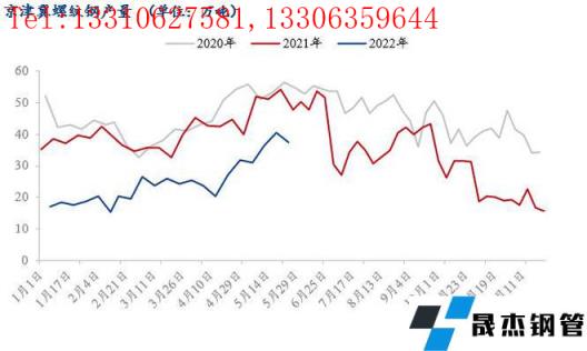 從上圖可以看出,5月份京津冀建筑厚壁無縫鋼管無縫厚壁鋼管廠家的螺紋鋼產(chǎn)量緩慢提升,雖然中下旬產(chǎn)量有所下降,但是仍處于相對高位,不過低于往年同期水平。截至5月底,螺紋鋼周產(chǎn)量為37.51萬噸,產(chǎn)量月環(huán)比提升17.6%,較去年同期低21.3%。本月除承鋼受當?shù)匾咔橛绊?,原料運輸受阻,高爐有檢修情況,導(dǎo)致建材產(chǎn)量有所下降外,其他無縫厚壁鋼管廠家如敬業(yè)、東華、東海特鋼、樂鋼等月產(chǎn)量均有所提升,且隨著運輸情況緩解,無縫厚壁鋼管廠家廠內(nèi)資源陸續(xù)向周邊市場分流。從調(diào)研情況來看,當前無縫厚壁鋼管廠家螺紋鋼生產(chǎn)成本在4500-4600元/噸,雖然利潤微薄,但是6月份也無檢修計劃,且產(chǎn)量或較5月份有提升。