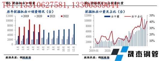 1-5月,挖掘機出口銷量占總銷量比重為34.53%,同比增速為75.98%。若2022年挖掘機出口能維持50%的增長,則可對沖國內(nèi)挖掘機銷量30%的下滑,中國挖掘機銷量整體降幅為15%。目前來看,我國挖掘機出口需求仍保持較高速度增長,對國內(nèi)需求下滑抵消量或好于預(yù)期。